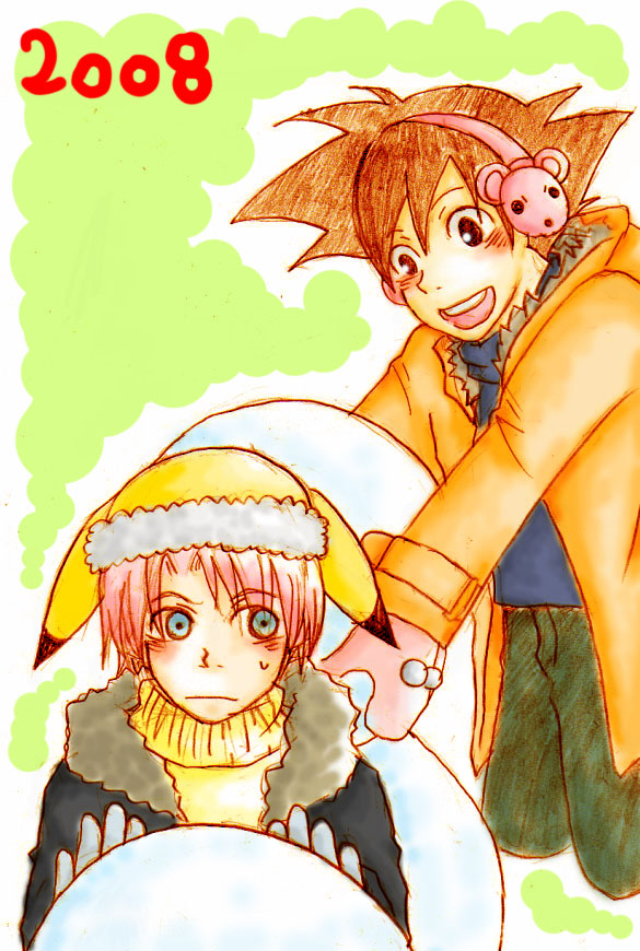 色々書くのを先延ばしにいていたら、一ヶ月近く経とうとしていましたorz本気でお久しぶりでげす、皆さん。今日で冬休み終わっちゃうよ。あはは。 えーと、この間に何かあったのかというと イベント…ドラクエ…バイトバイトバイト…宮崎…バイトバイトバイト…ドラクエ でした(わかんねえよ)とりあえず、冬休みはのんびりしてませんでした。ええ。生まれて初めて九時間労働してみたり、宮崎の町を練り歩いてみたり(まるで初めてのお遣いだった)しましたよ。人間、限界を超えたら、ちょっと頭が可笑しくなるようです。疲れたと言うよりは、楽しく感じていました。 さあて、新年初の日記だし。今年の抱負でも一つ。 変わらず、行こう。 はい、抱負じゃねえっ!今年も変わりませんよ、わし。相変わらずのヲタだし。てか、もう、変えられない気がするんだ(要は手遅れ)あ、でも 自分の満足できる作品を最低三つ書く。 は、達成したいな。とりあえず、今書いている長編が無事に終わればいい。何気に、もそもそと創作活動はしていました。 久しぶりの日記で、書きたいことがいっぱいあったのですが、ありすぎて結局一個もかけなかった(笑) というか、書き方を忘れた。わしって、一々こんなに行あけていたっけ? 年賀状、皆さん届いたかな。いや、本当は2、3枚まだ出さねばならんのだが、葉書が……葉書がない。買いに行くのがめんどい。 つうわけで、何人かの人は諦めてください。わしはもう諦めました(をい) ちなみに今年はこの2枚を世の中にばらまきました。えらい迷惑だな。 これに一人一人メッセージを書いてみました。最後らへん、ペンが死にかけていた。インクジェットの特殊加工の奴がペン先につまったのだと思われ。宮崎のばあちゃんちで、熱湯につけたら生き返りました。 にしても、祝う気まっったくなしの絵だな。 毎年毎年、いただいてくれている皆さん、どうも有難う。 つうわけで、ことしもよろしくです。 PR